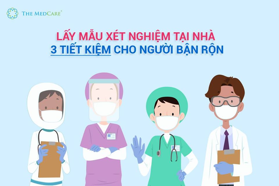 • Lấy mẫu xét nghiệm tại nhà: khách hành chỉ việc đặt lịch và chúng tôi sẽ có nhân viên đến lấy mẫu, chỉ một gian ngắn khách hàng nhận kết quả qua các hình thức: qua APP, qua WEBSITE, qua tin nhắn SMS. Song song đó nếu kết quả có bất thường chúng tôi có thể tư vấn hoặc cho thuốc ONLINE cho khách hàng